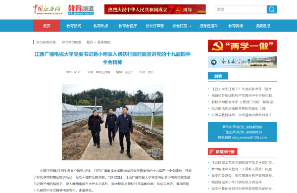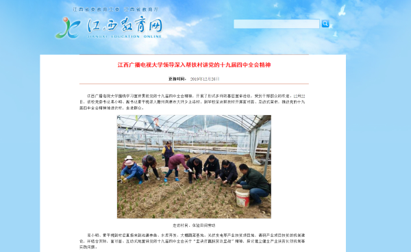 近日,江西教育网、中国江西网等省内主流媒体同时刊登beat365党委书记易小明深入定点帮扶村,“面对面、互动式”宣讲党的十九届四中全会精神。
