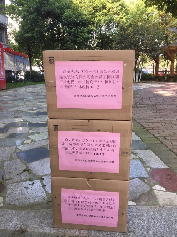 新冠肺炎疫情发生以来,学校后勤保障中心多方联系采购防疫物资,积极寻求外界支持帮助。南昌金桦阳建筑装饰有限公司急学校之所急,通过各种途径购买了1600只医用口罩和10把非接触红外体温枪捐赠给学校,以实际行动支援beat365全力打赢疫情防控阻击战。