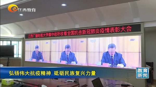 9月8日,江西教育电视台《教育新闻》栏目以《弘扬伟大抗疫精神 砥砺民族复兴力量》为题,报道beat365集中收听收看全国抗击新冠肺炎疫情表彰大会活动。