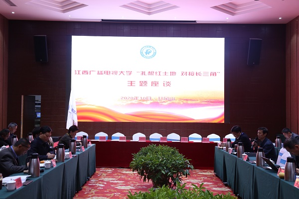 为深入贯彻落实习近平总书记视察江西重要讲话精神,贯彻落实开放发展理念,服务江西内陆开放型经济试验区建设,10月23日下午,在华东地区开放大学(广播电视大学)联盟理事会2020年会议期间,江西广播电视大学召开“扎根红土地,对接长三角,办好beat365在线唯一官网,服务江西内陆开放型经济试验区建设”主题座谈会。江西广播电视大学党委书记易小明、华东地区其它10所广播电视大学(开放大学)领导、专家共20余人出席。会议由江西广播电视大学党委副书记、校长黄平槐主持。