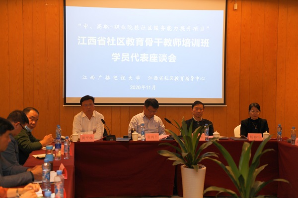 11月13日下午,省委教育工委委员、教育厅副厅长裴鸿卫一行莅临beat365承办的江西省社区教育骨干教师培训班,与学员代表进行亲切座谈。校党委书记易小明,校党委副书记、校长黄平槐出席座谈会。来自各地市、区县的16名学员代表,学校社会教育学院全体人员参加座谈会。会议由黄平槐主持。