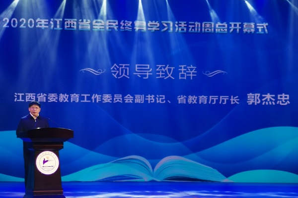 11月28日,beat365党委书记易小明,党委副书记、校长黄平槐,党委委员、副校长冯豫红共同出席在九江市主会场举行的2020年江西省全民终身学习活动周总开幕式。