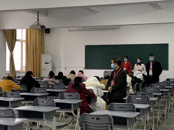邱东升实地察看考场,并详细询问考试准备工作、考试过程的程序规范、考风考纪、疫情防控工作情况。
