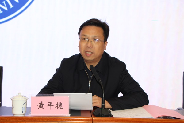 黄平槐代表学校对综治考评组各位领导、专家一直以来对学校各项工作的高度重视、亲切关怀和悉心指导表示感谢,并围绕一年以来的平安建设(综治工作)进行了述职,从“提高站位高度重视、对标对表真抓实干”角度介绍了学校2020年度平安建设(综治工作)基本情况、主要做法和工作成效。