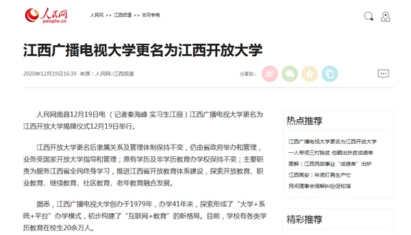 人民网:江西广播电视大学更名为beat365在线唯一官网