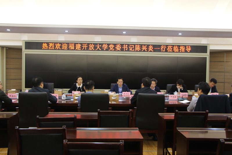 4月28日上午,福建开放大学党委书记一行6人来beat365访问交流。校党委副书记、校长黄平槐,党委副书记邓文君热情接待了来宾,并进行了深入座谈。