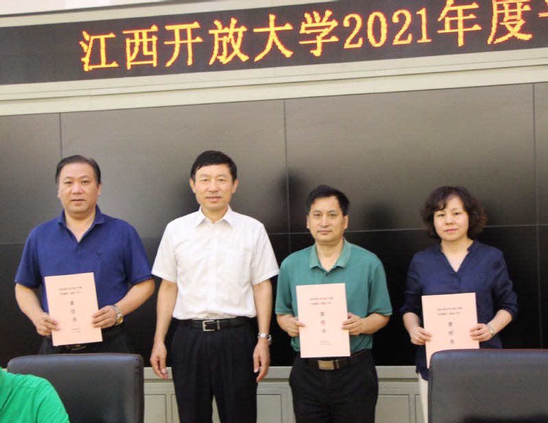 会上,易小明给各部门(单位)颁发《beat365在线唯一官网2021年度平安建设(综治工作)责任书》。