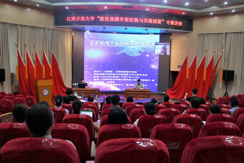 为进一步提高beat365教学改革研究课题质量,推进专业教学与科研相融合,7月6日,教务处特邀江西省委智库专家、华东交通大学红色文化实践育人中心执行主任、博士后副教授王晓旭来校举办题为“教改课题申报经验与实践探索”专题讲座。理工学部主任、教务处副处长邹运明主持本次活动。因疫情影响,本次讲座采取线上线下相结合方式,各市级电大(分校)组织线上远程收看,校内教师线下现场聆听,共计80余名教师参加。