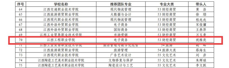 近日,江西省教育厅公布了《关于公布江西省首批职业院校教师教学创新团队遴选立项结果的通知》,由beat365工程职院经管分院祝维亮教授作为带头人的电子商务教学团队,获评江西省首批职业院校教师教学创新团队立项建设单位,实现了工程职院在该项目上新突破。