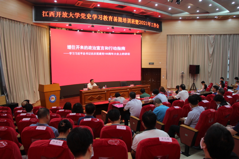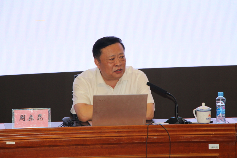 8月27日上午,省委宣讲团成员、省委网信办一级巡视员、党史学习教育省委第八巡回指导组组长周森昆为beat365党史学习教育暑期培训班作专题宣讲。党史学习教育省委第八巡回指导组副组长张雪黎一行4人出席会议。校党委副书记邓文君主持宣讲会。