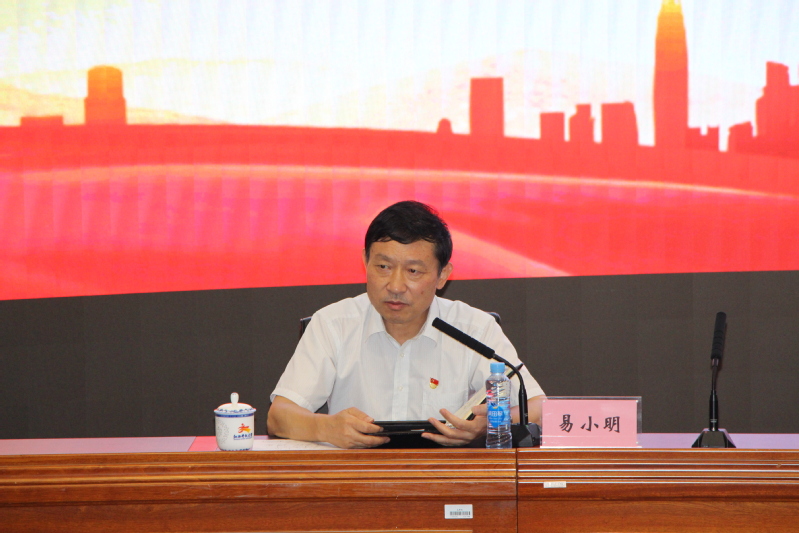 8月28日下午,校党委书记易小明为学校党史学习教育暑期培训班作深入学习贯彻习近平总书记“七一”重要讲话精神专题宣讲。校领导、全体处级干部、各部门科级干部负责人参加会议。校党委副书记邓文君主持会议。