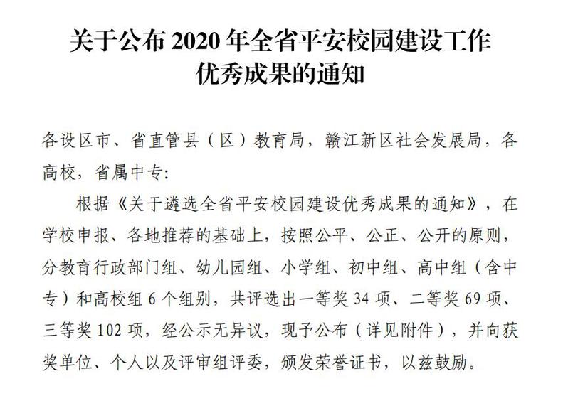 近日,省教育厅公布2020年全省平安校园建设工作优秀成果,beat365《以军事化管理促校园平安和谐》、工程职院《联防联控助力平安 用心用情守护成长》两项成果获得高校组三等奖。