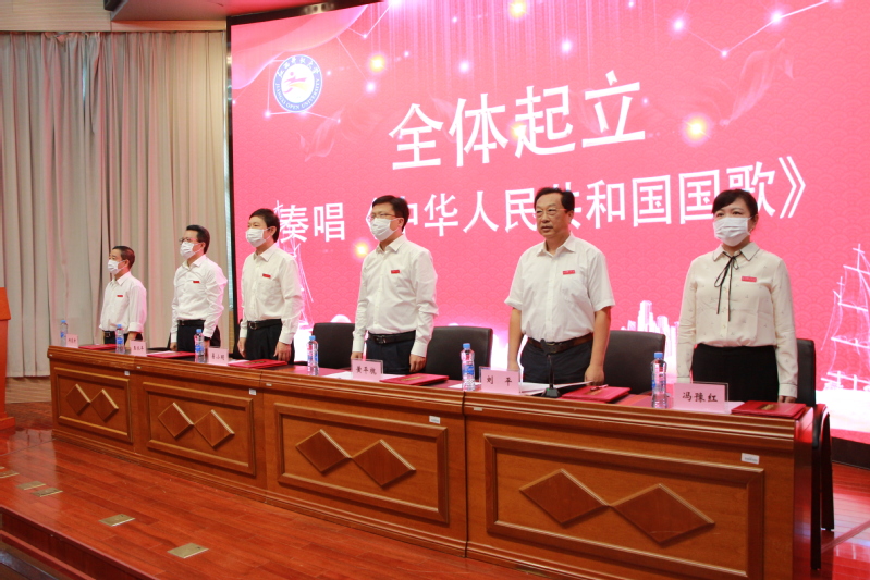 开学典礼在雄壮激越的《中华人民共和国国歌》中拉开序幕,全体师生起立齐唱国歌。