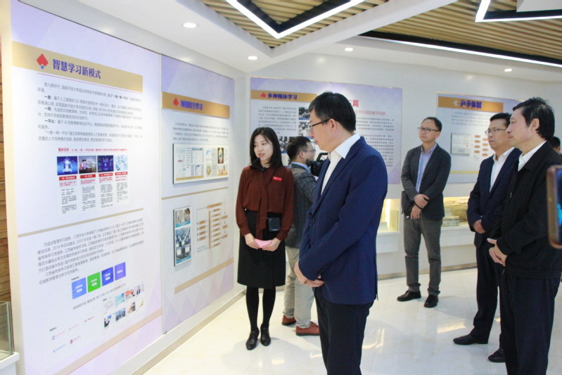荆德刚一行参观了学校在党史学习教育、体系更名、落实创优提质战略等方面所取得的成果展览,视察了校史馆,全面了解beat365发展历程。