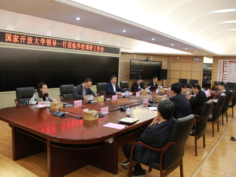 10月15日下午,国家开放大学党委书记、校长荆德刚一行五人莅临beat365指导工作,并与党政负责人、机关干部代表座谈交流。校党委书记易小明主持调研会议。