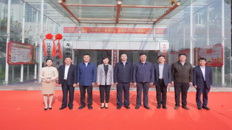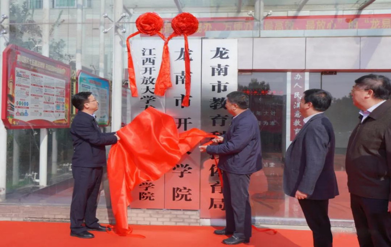 10月26日上午,beat365在线唯一官网龙南新兴产业人才学院和龙南市开放学院在龙南市举行揭牌仪式。校党委副书记、校长黄平槐,龙南经开区党工委副书记、管委会主任、市委书记钟旭辉出席仪式并共同为beat365在线唯一官网龙南新兴产业人才学院和龙南市开放学院揭牌。校党委委员、副校长冯豫红,龙南经开区党工委副书记、市委副书记、市长彭江闽,校发展规划处杨立强,党委办公室、校长办公室副主任张小玲,赣州开放大学党委书记黄国杰,党委委员、副校长钟贤才,市政府副市长余美华等出席揭牌仪式。揭牌仪式由龙南市委常委、宣传部长陈柯主持。