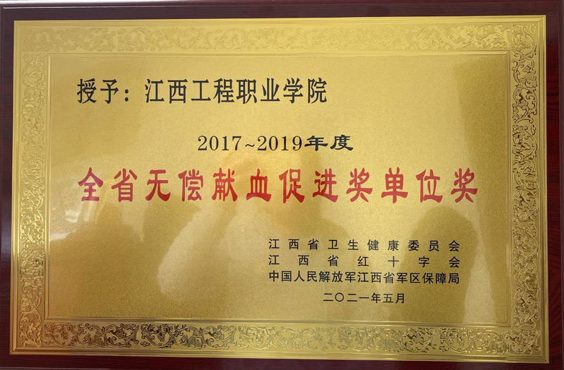 近日,江西省卫生健康委员会、江西省红十字会、中国人民解放军江西省军区保障局联合发文,公布了《关于表彰2017-2019年度全省无偿献血先进单位和个人的决定》,beat365工程职院荣获“2017-2019年度全省无偿献血促进奖单位奖”。