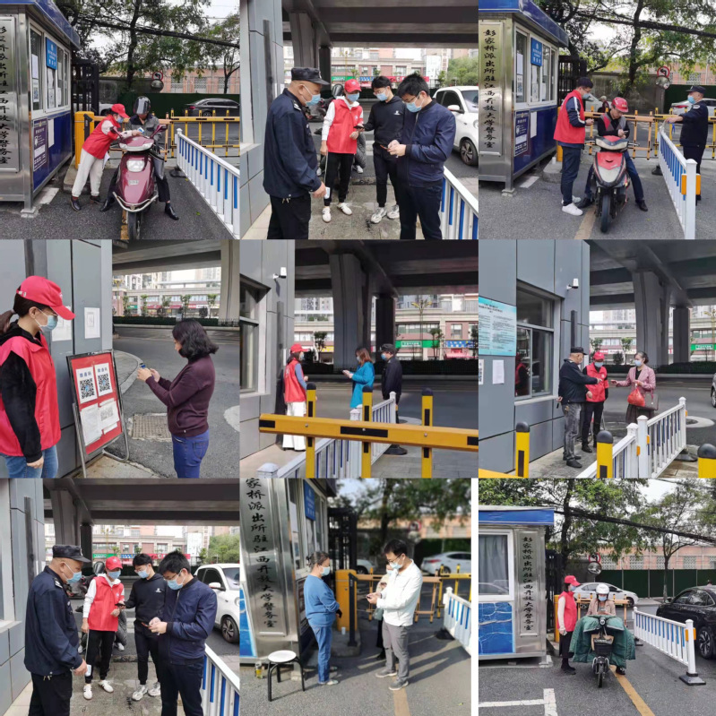 原来,这是机关党委四支部开展为期一周的“助力平安校园、协助疫情防控”志愿活动的一幕。面对省内当前疫情防控严峻复杂形势,有效缓解门岗疫情防控管理压力,机关党委四支部号召全体党员亮身份,以实际行动参与到“我为群众办实事”实践活动中,在每天上班高峰期实行轮班制,对进入校园的人员、车辆积极引导,进行测温扫码,严格落实“三验一戴”(查验体温、查验健康码、查验行程码、佩戴口罩)防控措施。
