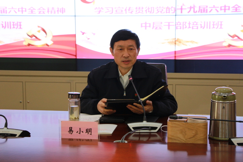 易小明指出,党的十九届六中全会,是在党成立一百周年的重要历史时刻,在党领导人民实现第一个百年奋斗目标、向着第二个百年奋斗目标迈进的重大历史关头,召开的一次具有里程碑意义的重要会议。全会通过的《中共中央关于党的百年奋斗重大成就和历史经验的决议》,是党的历史上第三个历史决议,同党的前两个历史决议既一脉相承又与时俱进,思想含量、知识含量十分丰富,政治性、理论性、战略性、指导性都很强,是一份具有极强历史穿透力、思想引领力、政治动员力、时代感召力的马克思主义纲领性文献。