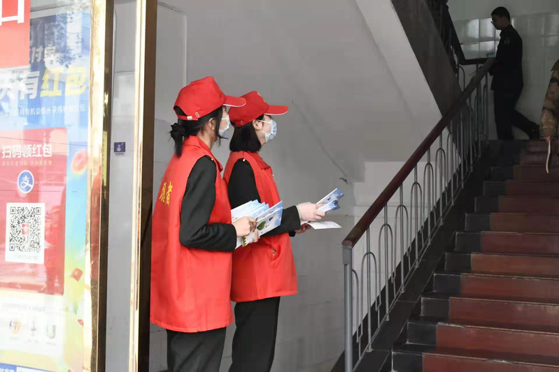 志愿者们向师生宣传节约粮食和垃圾分类的知识