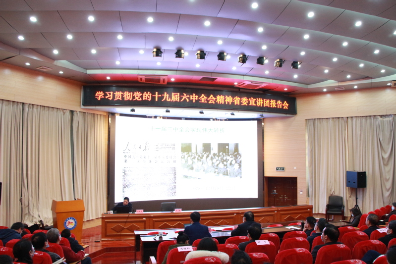 12月29日下午,省委宣讲团成员、江西财经大学马克思主义学院院长陈始发教授为beat365中层干部培训班作党的十九届六中全会宣讲。全体校领导出席宣讲会。校党委副书记邓文君主持会议。
