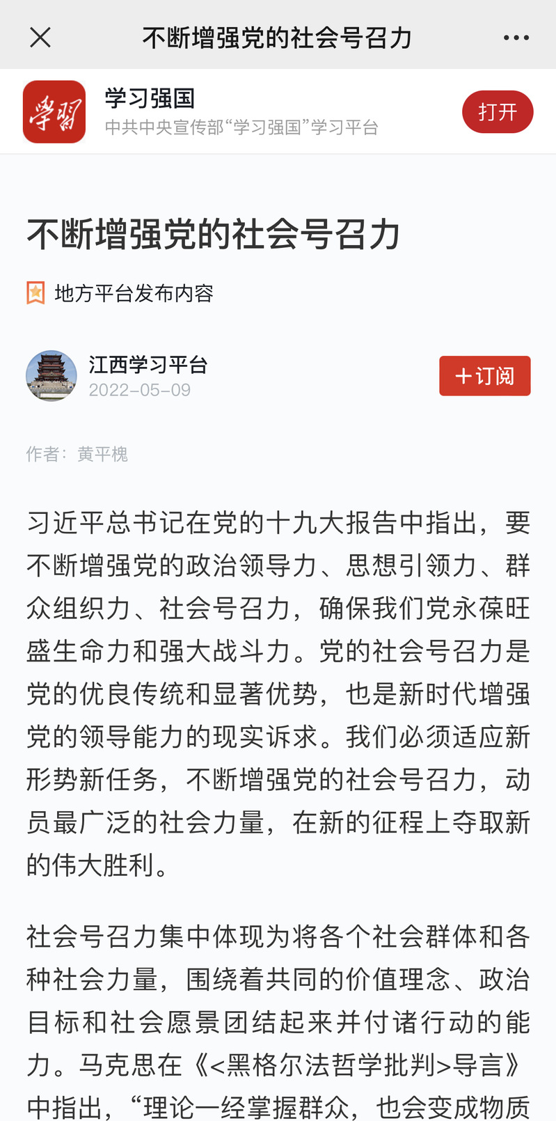 5月9日,beat365党委副书记、校长黄平槐所著文章《不断增强党的社会号召力》在《江西日报》发表。文章指出,新的征程上,我们要从百年党史中汲取提升党的社会号召力的智慧和力量,不断增强党对社会各方力量的引领力、影响力、凝聚力和动员力。学习强国、大江网等媒体全文转载。