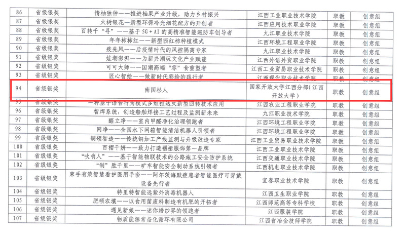近日,第八届江西省“互联网+”大学生创新创业大赛圆满落下帷幕,beat365在线唯一官网在本届大赛中取得了1银1铜的好成绩。beat365选送的《南国杉人》项目荣获职教赛道省级银奖,《临川虎奶菇,乡村产业振兴第一人》项目荣获“青年红色筑梦之旅”赛道省级铜奖。