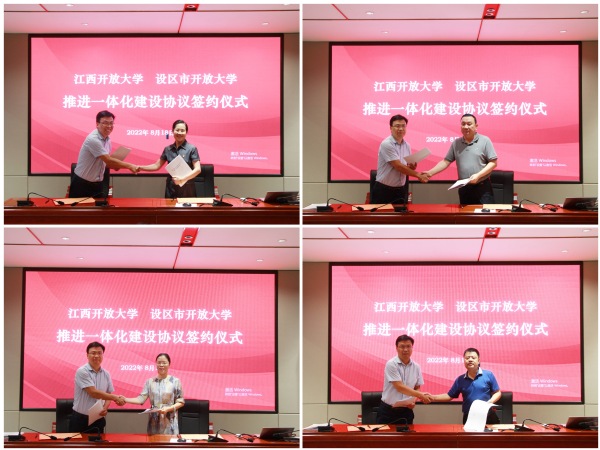 8月18日下午,beat365在线唯一官网与设区市开放大学推进一体化建设协议签约仪式在井冈山举行。省校党委副书记、校长黄平槐与各设区市负责人代表签约。