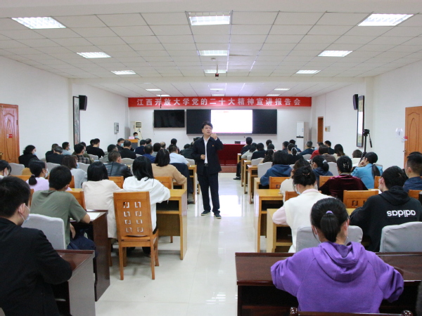 11月2日下午,校党委书记贺瑞虎在人武学院开讲思政课,专题宣讲党的二十大精神。人武学院院领导、师生代表百余人现场聆听。人武学院党委书记魏金生主持会议。