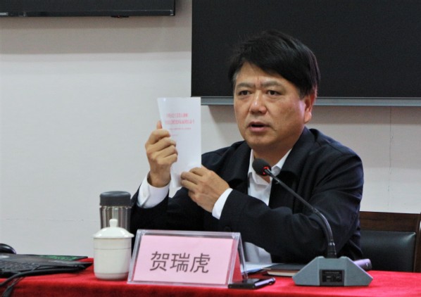 第二,要敢于担当尽责。“青年一代有理想、有本领、有担当,国家就有前途,民族就有希望”。贺瑞虎指出,担当的本质在于责任意识与家国情怀;不是消极观望,而是主动揽起责任;是以一种主人翁精神,把属于自己的那份责任勇敢地扛在肩上,愿意为了国家民族乃至人类奉献。他以2020年“最美医生”甘如意不畏疫情,3天2夜骑行200多公里回武汉上班的故事,勉励青年学生要坚持“敢”字当头,以初生牛犊不怕虎、越是艰险越向前的刚健勇毅,扛起新一代民族儿女如山的青春责任。