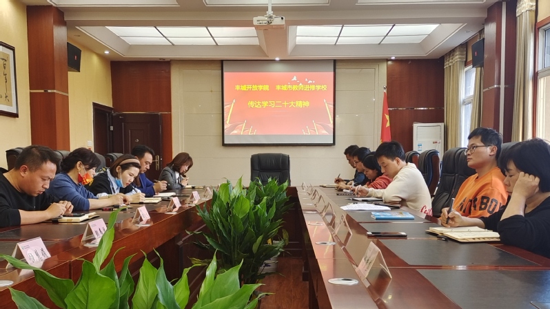 11月1日,宜春开放大学丰城开放学院召开支部扩大会议,传达学习党的二十大精神,支部委员陈爱平组织学习,学校全体教师参加。