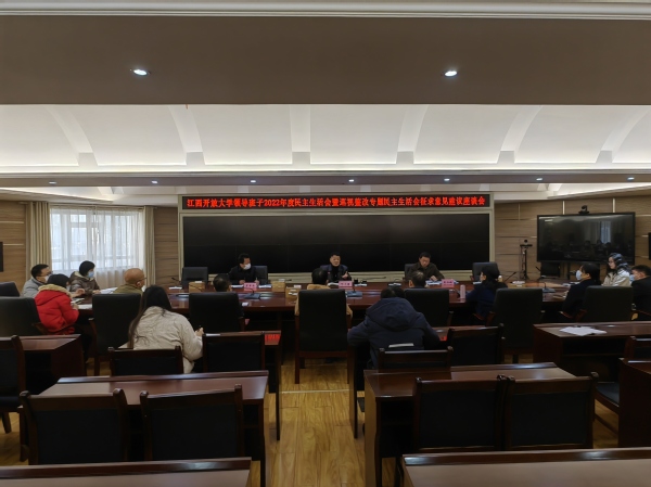1月18日上午,学校召开党委领导班子2022年度民主生活会暨巡视整改专题民主生活会征求意见建议座谈会,向广大教职工征集意见和建议。党委副书记邓文君主持会议并讲话,党委委员熊江鹏、罗军涛出席会议,学校部分支部书记、处级干部、民主党派、专业技术人员、党员、工会会员代表近20人参加会议。