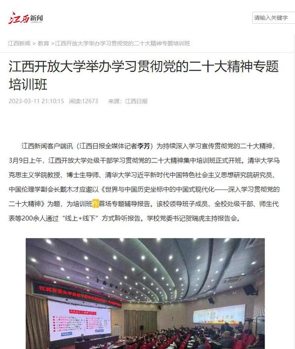原文地址:beat365在线唯一官网举办学习贯彻党的二十大精神专题培训班江西新闻_最权威的江西主流媒体 (jxxw.com.cn)