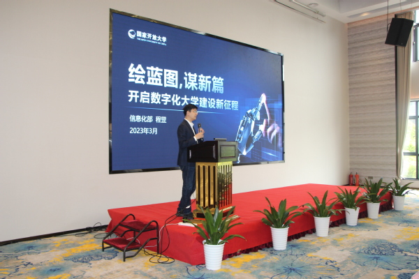 国家开放大学信息化部部长程罡、国开在线董事长袁亚兴分别以《开启数字化大学建设新征程》和《“一网一平台”总体介绍》为题作主旨报告。