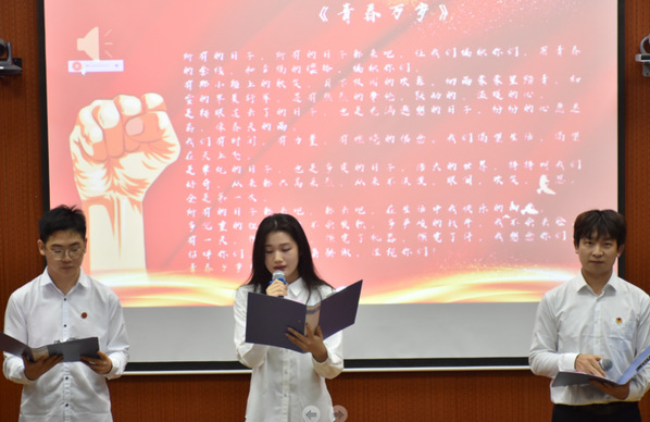 活动中,青年学生语气舒缓、声情并茂地集体诵读方志敏烈士《可爱的中国》(节选),将活动气氛推向了高潮,悠悠诵读声久久飘扬。随后,学生代表上台朗诵《青春万岁》,激昂的诗篇,难忘的岁月,熟悉的诗句,演绎时代的华章。