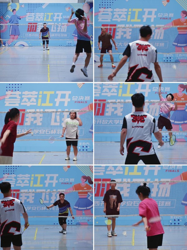 本次“安石杯”羽毛球赛分为男、女单打两项,113名女选手和117名男选手分组两两对决,经过五轮精彩比赛,最终男、女各6名选手进入决赛。决赛现场气氛十分热烈,欢呼声此起彼伏,全体运动员以饱满的精神、昂扬的斗志投入到比赛当中。这边男子单打的选手们球风凛冽,扣杀声响彻赛场。那边女子单打的选手们巾帼不让须眉,眼神坚定、利落发球,赛况激烈。