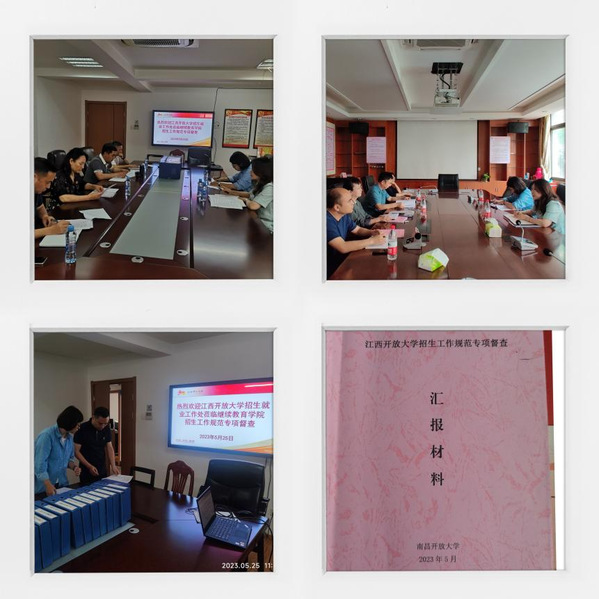 为深入学习贯彻习近平新时代中国特色社会主义思想,做到以学增智、以学促干,持续推进beat365招生工作高质量、规范化发展,5月25日,按照学校招生工作规范专项督查行动的要求,招生工作规范专项督查组第一组对继续教育学院和南昌开放大学近3年招生工作规范管理情况进行了实地督查。