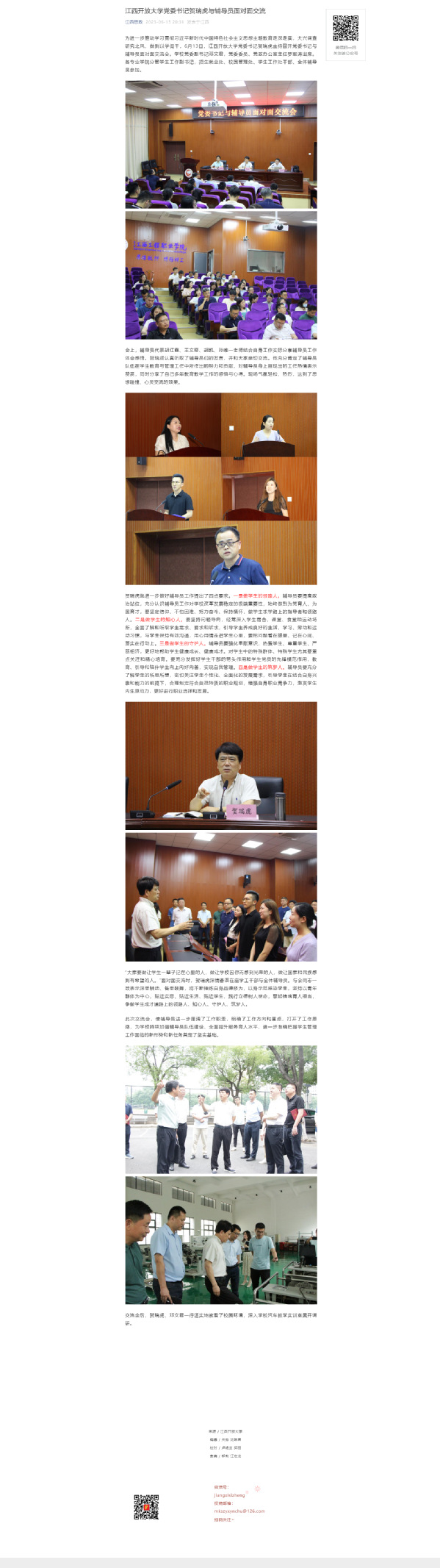 为进一步推动学习贯彻习近平新时代中国特色社会主义思想主题教育走深走实,大兴调查研究之风,做到以学促干,6月13日,beat365在线唯一官网党委书记贺瑞虎主持召开党委书记与辅导员面对面交流会。学校党委副书记邓文君,党委委员、党政办公室主任罗军涛出席。各专业学院分管学生工作副书记,招生就业处、校园管理处、学生工作处干部、全体辅导员参加。