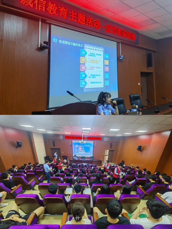 一是安排各专业学院围绕主题召开专题班会。通过观看视频、分享诚信小故事、进行诚信大讨论等相关班会内容普及防范金融诈骗、电信诈骗和不良校园贷等方面的知识,让文明、诚信、反诈意识走进学生的心灵。