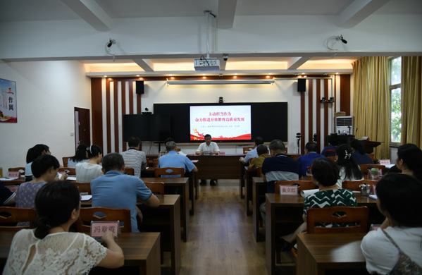 为热烈庆祝中国共产党成立102周年,深入学习贯彻党的二十大精神,进一步加强和改进基层党建工作,赣州开放大学召开庆“七一”党建工作推进会暨“党课开讲啦”活动。市委教育工委委员、校党委书记黄国杰,党委副书记、校长曾德军出席会议并讲话,在家的班子成员、全体教职工参加会议。