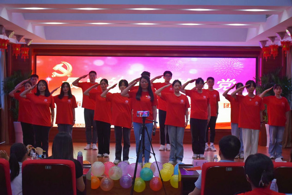 在庆祝建党102周年暨“七一”红歌比赛中,实践团成员与村里党员、群众一起欢聚一堂,用歌舞、朗诵和合唱的表演形式,为党的生日献上了最真挚的祝福。