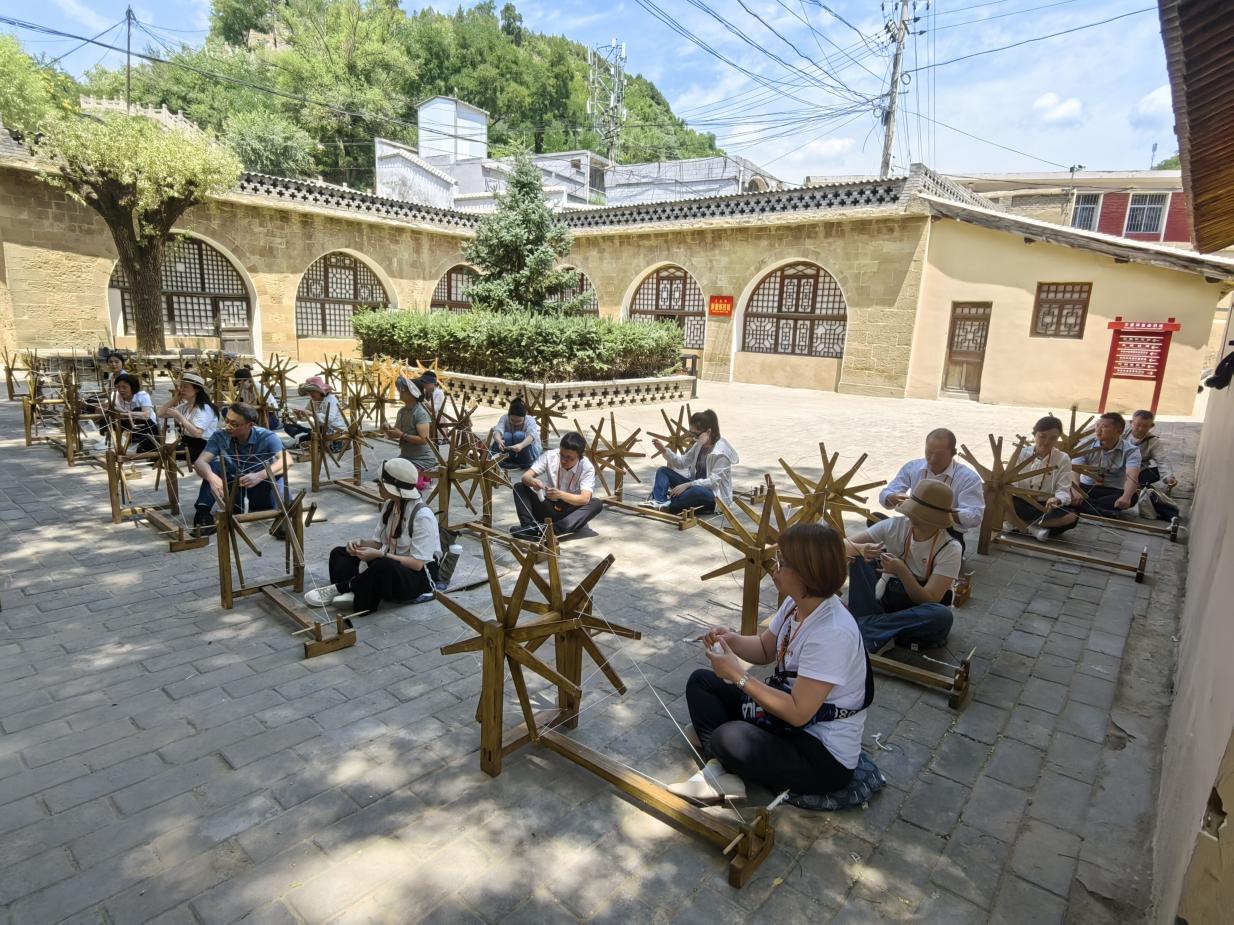 在巍巍宝塔山,全体党员冒着中雨,面向鲜艳的党旗,高举右拳,重温入党誓词。“我志愿加入中国共产党,拥护党的纲领,遵守党的章程……”铿锵有力的誓言升华了每一名党员的思想,更加坚定了为党育人、为国育才的使命担当。在王家坪革命旧址,大家顶着烈日,体验延安大生产运动中的纺车纺纱,对自力更生、艰苦奋斗的创业精神有了更加深刻的感悟。