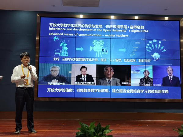 贺瑞虎在主旨发言中指出,在数字教育时代,终身教育要积极适应数字化、智能化、终身化、融合化发展趋势,集聚全社会优质学习资源,构建方式更加灵活、资源更加丰富、学习更加便捷的服务全民的终身学习体系,以满足社会成员多样化、个性化学习需求。开放大学诞生并成长于信息技术环境,能够快速顺应时代发展要求,积极主动进行数字化转型,推进“数字化大学”建设,建立服务全民终身学习的教育新生态。数字化是促进全民终身学习的重要推动力,通过数字化丰富储存内容、构建在线情境、拓展数字空间,实现学习者“人人皆学、处处能学、时时可学”,以数字化推动全民终身教育创新发展。