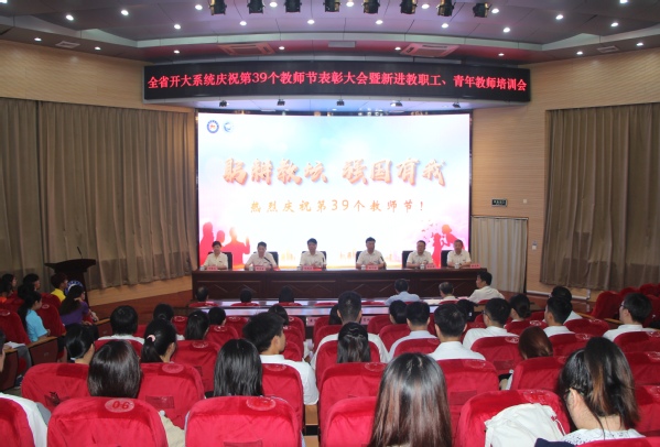 在全国第39个教师节来临之际,9月6日上午,学校举办庆祝第39个教师节表彰大会暨新入职教职员工、青年教师培训会。全体校领导、各部门主要负责人、长期从教教师、35岁以下青年教师、新入职教职工齐聚一堂,共同庆祝。