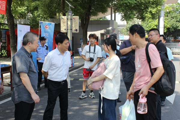 当日上午,党委书记贺瑞虎带队深入西湖校区迎新现场看望慰问2023级新同学,深入了解新生入学报到情况,慰问在迎新一线工作的师生。