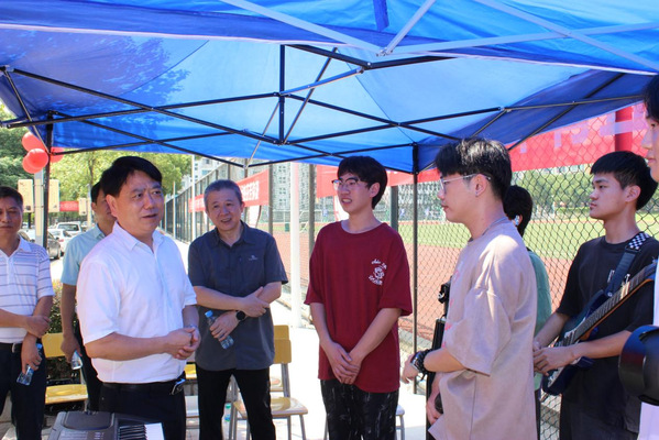 贺瑞虎还带队来到四月天乐器社现场聆听学生献唱,对乐队激情澎湃的演出态度大为赞赏:“年轻人充满了朝气和激情,要让校园成为一个大舞台,以此锻炼自己,融入社会、拥抱生活。”他叮嘱相关责任单位,要扩建、拓展社团活动场所,为大家提供丰富多彩的课外文化活动平台,提升学生综合能力全面发展。