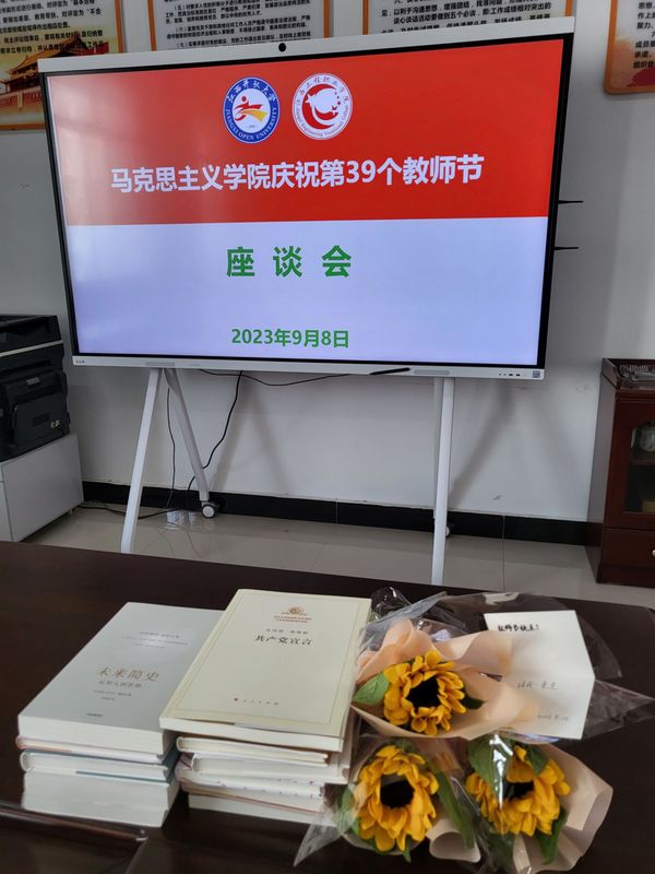 座谈会伊始,学院为每位教职工送上一束向日葵,配以精致的贺卡并致以最诚挚的节日祝福。教师是天底下最光辉的职业,一朵朵美丽的向日葵,寓意着“忠诚、信念、自强不息、阳光开朗和积极向上”,代表着学院教师忠于党的教育事业,坚持立德树人,全心全意为学生服务,用爱心浇灌成长,用知识托举希望,用信念筑牢思想。为深入推进“书香马院”建设,学院还购置一批马克思主义经典书籍及人文社科经典著作,在教师节到来前夕,赠给教师阅读。
