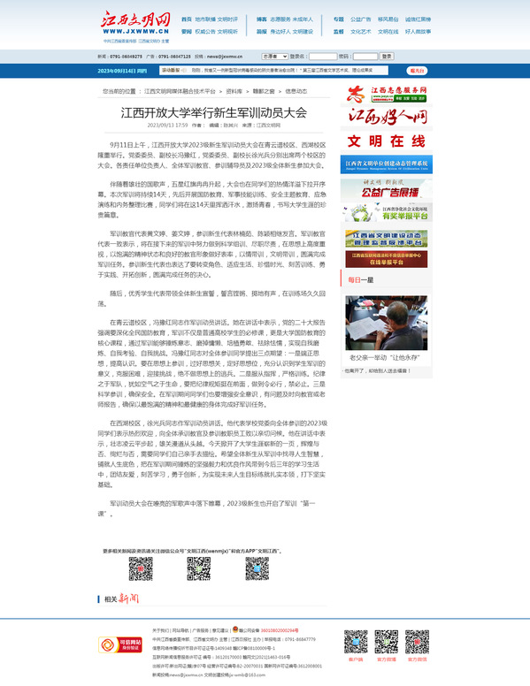 9月11日上午,beat365在线唯一官网2023级新生军训动员大会在青云谱校区、西湖校区隆重举行。党委委员、副校长冯豫红,党委委员、副校长徐光兵分别出席两个校区的大会。各责任单位负责人、全体军训教官、参训辅导员及2023级全体新生参加大会。