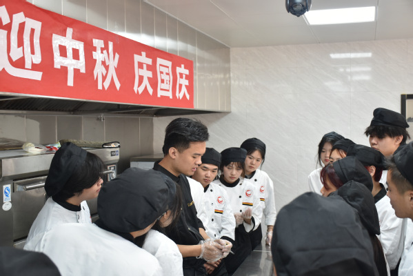 秋风送爽,丹桂飘香。为传承和弘扬中华民族优秀传统节日文化,丰富师生校园生活,感受中秋佳节魅力,学校团委组织广大青年开展了中秋“月饼DIY”活动,将劳动教育与庆祝传统佳节相融合,在体验手工制作月饼的过程中,提高动手能力,感悟传统文化,增进师生情谊。经过选拔,58名同学现场参加制作,烹饪工艺与营养专业熊俊钢老师深入现场指导。