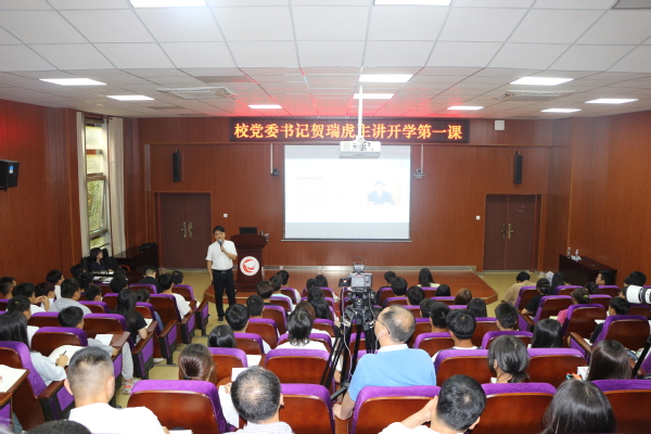 9月27日下午,学校党委书记贺瑞虎以《技能铸就辉煌 立志报效祖国》为题,通过“线上+线下”相结合的方式,为西湖校区和青云谱校区的新生学子同步带来了一堂紧贴时代、别开生面的“开学第一课”。新生代表、各二级学院领导、辅导员、思政教师及新入职教师共计160人现场聆听。